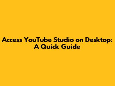 Simple Steps to Access YouTube Studio on Desktop