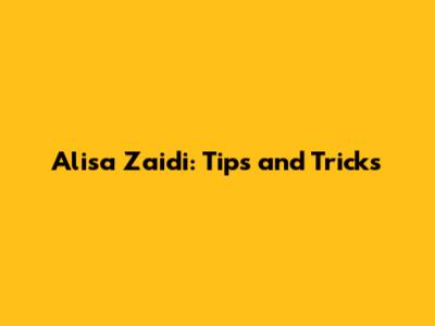 Alisa Zaidi: Tips And Tricks