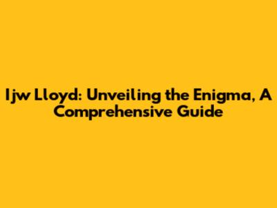 Ijw Lloyd: Unveiling The Enigma, A Comprehensive Guide
