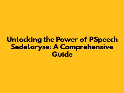 Unlocking The Power Of PSpeech Sedelaryse: A Comprehensive Guide