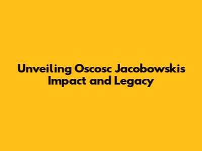 Unveiling Oscosc Jacobowski's Impact And Legacy