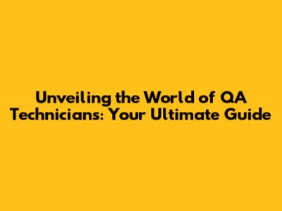 Unveiling The World Of QA Technicians: Your Ultimate Guide
